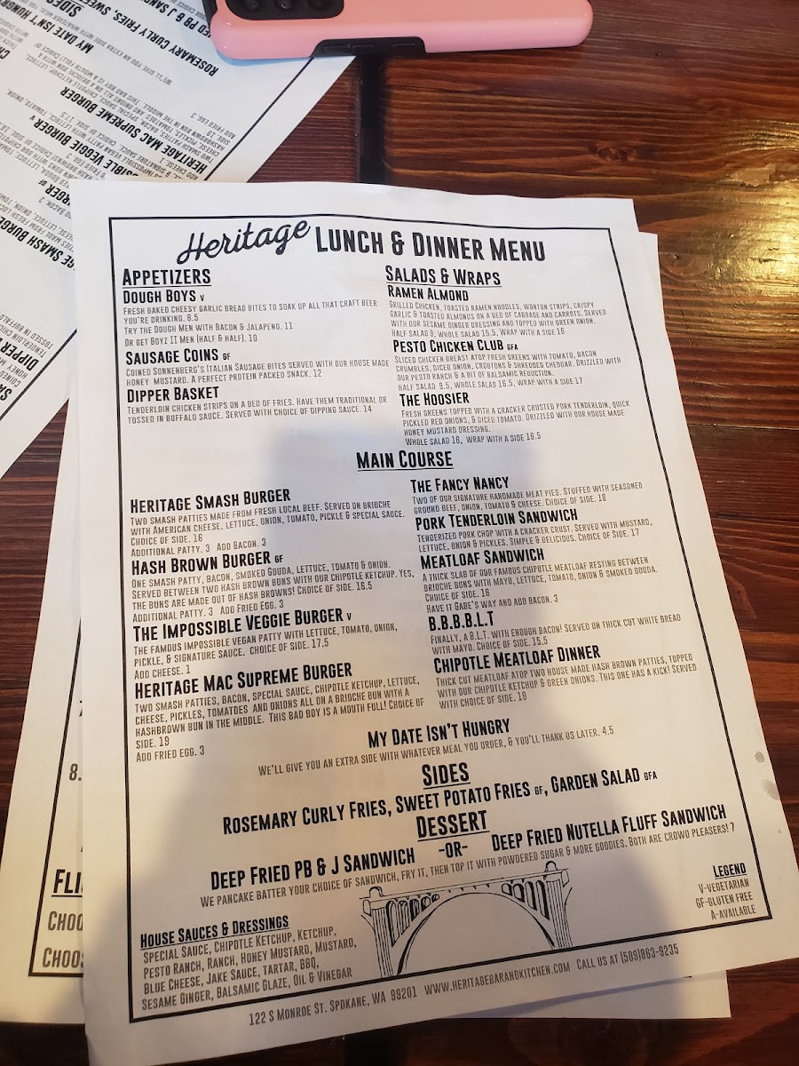 Welcome to Heritage Bar & Kitchen, a culinary haven in the heart of Spokane. This vibrant restaurant dazzles with a menu that perfectly marries comfort and creativity. Start your evening with Dough Boys—freshly baked cheesy garlic bread bites, ideal for soaking up your craft beer. For protein-packed pleasures, don’t miss the delightful Sausage Coins, served with house-made honey mustard.